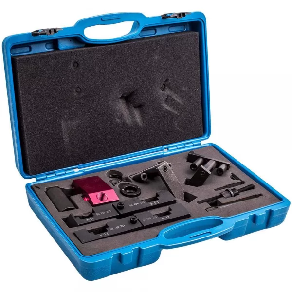M60/M62 -moottoristen ajoneuvojen ajoitustyökalusarja. Ajoitustyökalua tarvitaan nokka-akselin lukitsemiseen yläkuolokohtaan, kun tarkistetaan jakopään ajoitusta tai vaihdetaan nokkaketjua.